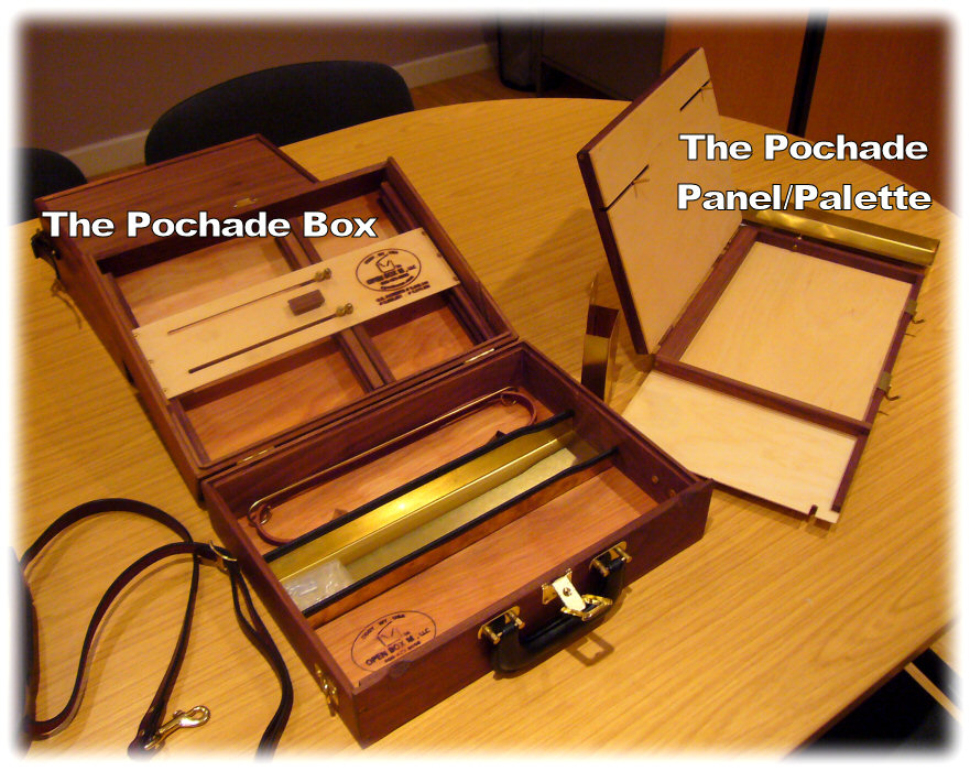 The centre tray inbetween the two rows of paints is removable and I've asked John if it's possible to have a spare "insert-tray" made which will accommodate brushes for use plein air. Here's the drawing I sent to him...